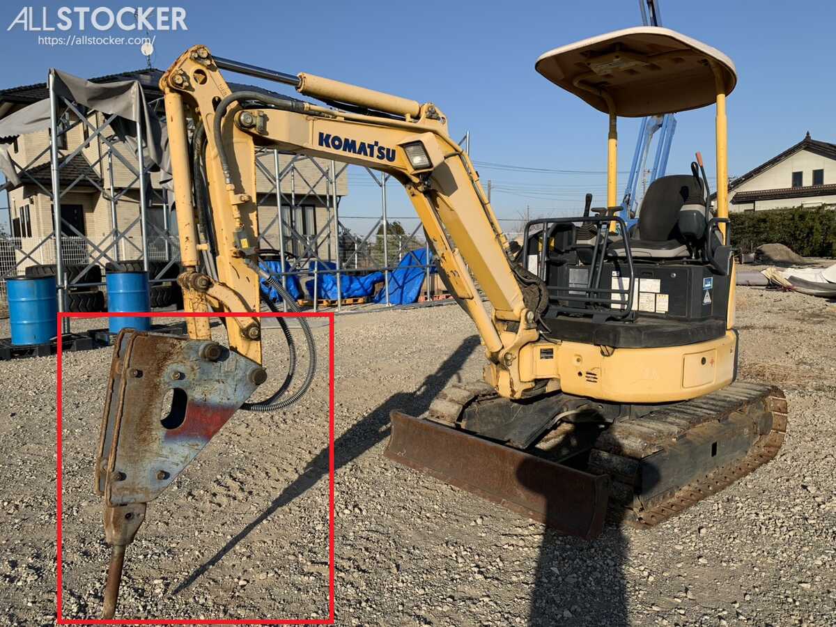 - 【中古】油圧ブレーカー メーカー不明 PC20クラス 動作確認可能 コマツPC20MR-3装着 ご覧いただきありがとうございます。 コマツ PC20MR-3 に装着している油圧ブレーカーの出品です。 ※出品はブレーカー本体のみです(本体機は含みません) ■商品詳細 ・メーカー:不明 ・型式:不明 ・適合クラス:0.07~0.1クラス前後(PC20クラス) ・装着機:コマツ PC20MR-3 ・シリアル刻印:8071(画像参照) ■状態 ・実動機に装着中のため、動作確認可能 ・打撃動作確認済み ・中古品のため、全体的にサビ・キズ・塗装剥がれあり ・チゼル(ノミ)摩耗あり ・ピン・ブッシュも使用感あり ・油圧ホース付き(使用可) ※現状渡しとなりますので、詳細は画像にてご確認ください。 ■付属品 ・ブレーカー本体 ・油圧ホース ※写真に写っているものが全てです ■注意事項 ・メーカー不明のため、細かい仕様は分かりかねます ・中古機械のためノークレーム・ノーリターンでお願いいたします ・適合確認はご自身でお願いいたします ・現物確認歓迎です ■発送について ・引き取り歓迎 ・発送の場合は西濃運輸またはチャーター便(要相談) ■おすすめポイント ・PC20クラスにちょうど良いサイズ ・現車にて動作確認できる安心の一台 ・格安でブレーカーをお探しの方におすすめです